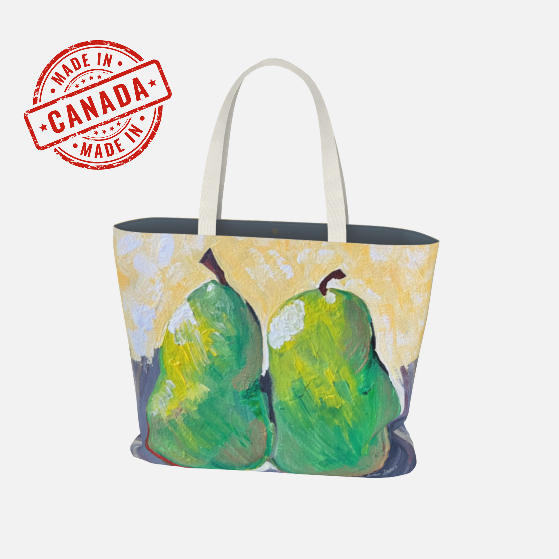 Proudly made in Canada, this tote features a fun and whimsical design from Helen's original painting Pair of Pears—bringing a splash of charm and personality to your everyday fit.