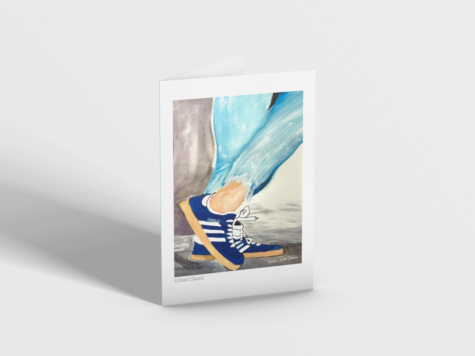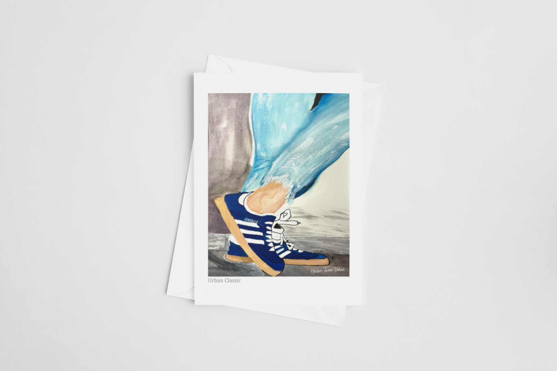 Step into the rhythm of city life with Urban Classic, a striking artwork that captures the effortless cool of vintage street style. Featuring the iconic Adidas Gazelle sneakers in bold cobalt blue, this piece blends nostalgia with modern edge. The textured watercolour strokes and casual denim vibes evoke movement, energy, and timeless swagger.